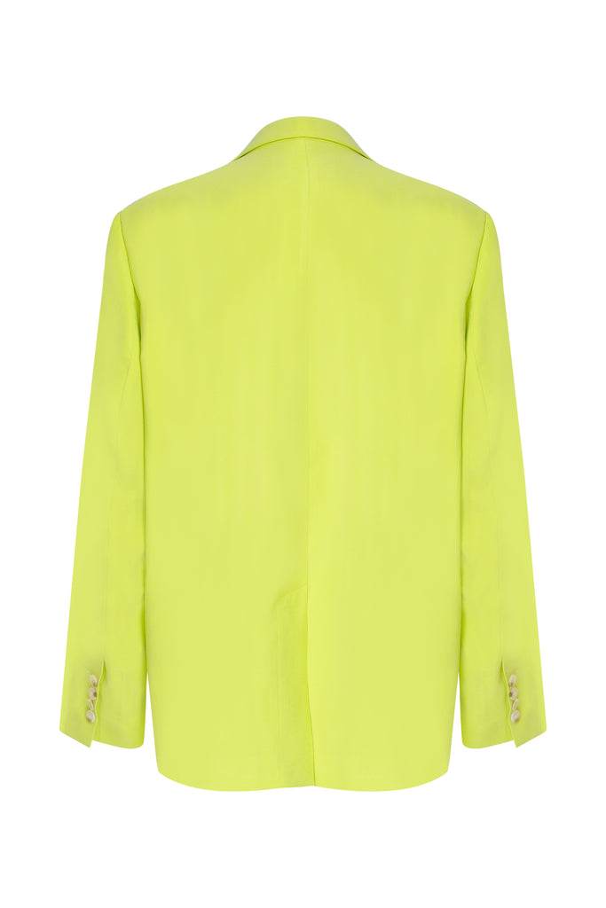 Boxy lime green blazer crafted to an oversized silhouette from purely natural and soft Tencel fabric, with padded shoulders and notch lapels. Lined in soft satin.