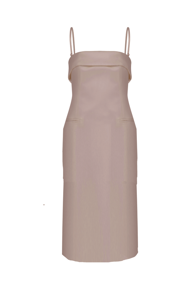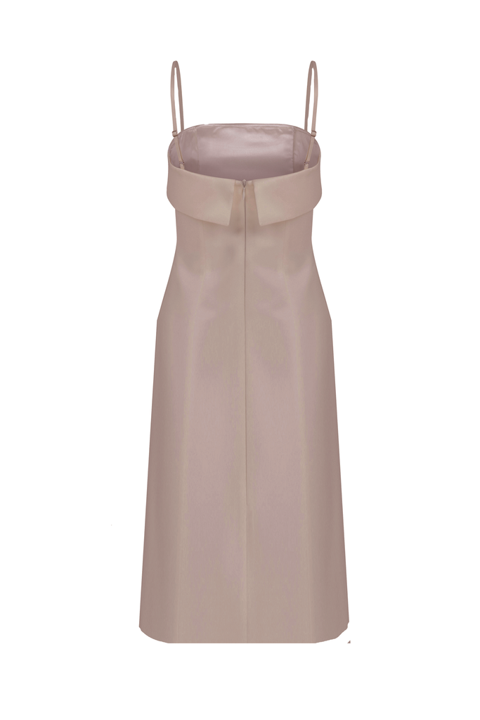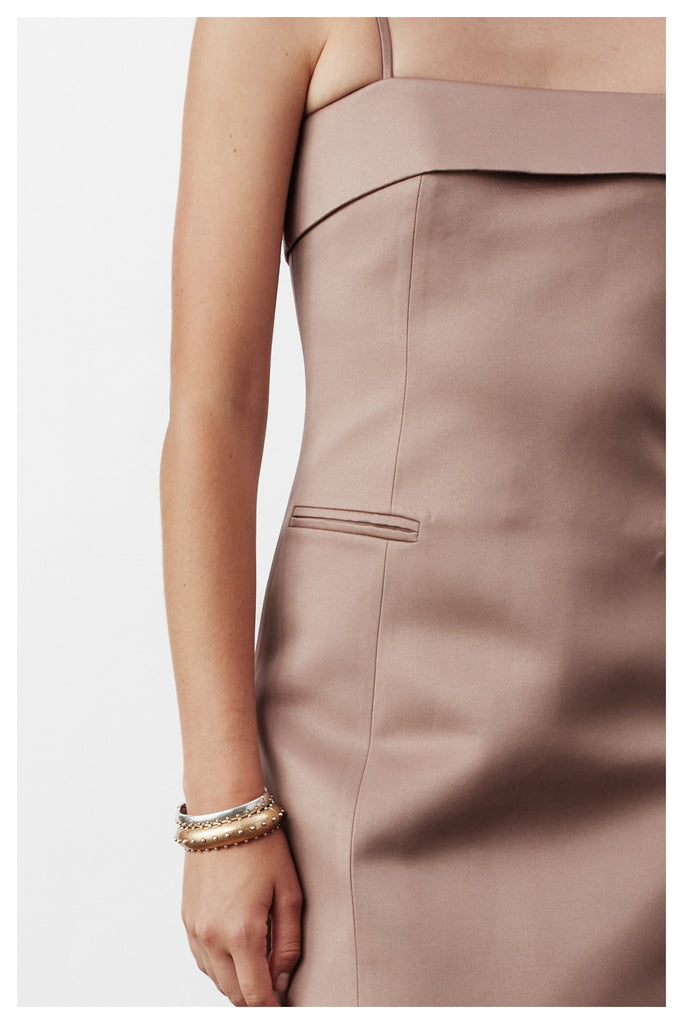 The Gaia Long Dress combines elegance and comfort with its body-hugging fit and satin lining. Made from matte satin with a slightly heavier texture, it holds a structured silhouette. Ankle length with a back slit for graceful movement, it fits true to size and is the perfect choice for cocktail events.