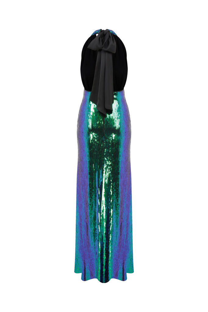 Ines Sequin Long Dress in Green
