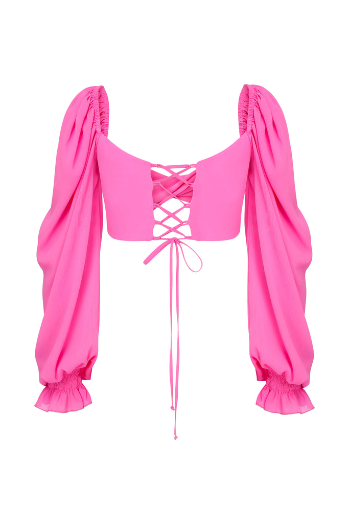 Nazlı Ceren's modern romance is expressed through this pink blouse. It’s crafted from a loose drape with balloon sleeves and an open back that fastens with slender ties. Capture the label’s playful sensibility by teaming it with a matching Amy's skirt and sandals.