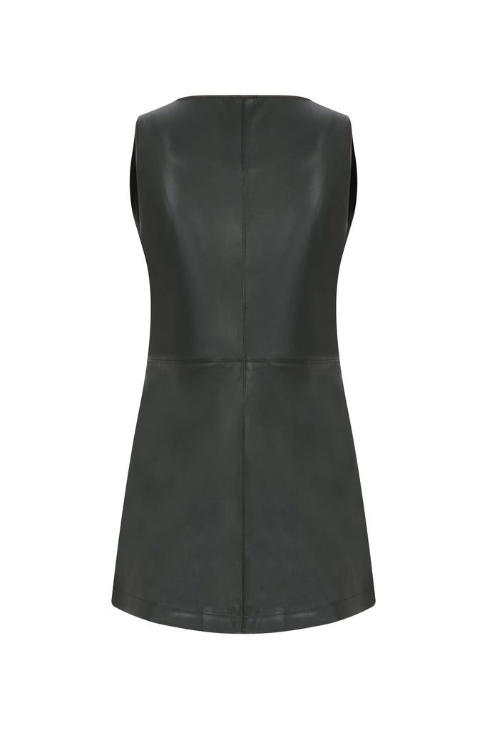 Odette Vegan Leather Mini Dress in Noire