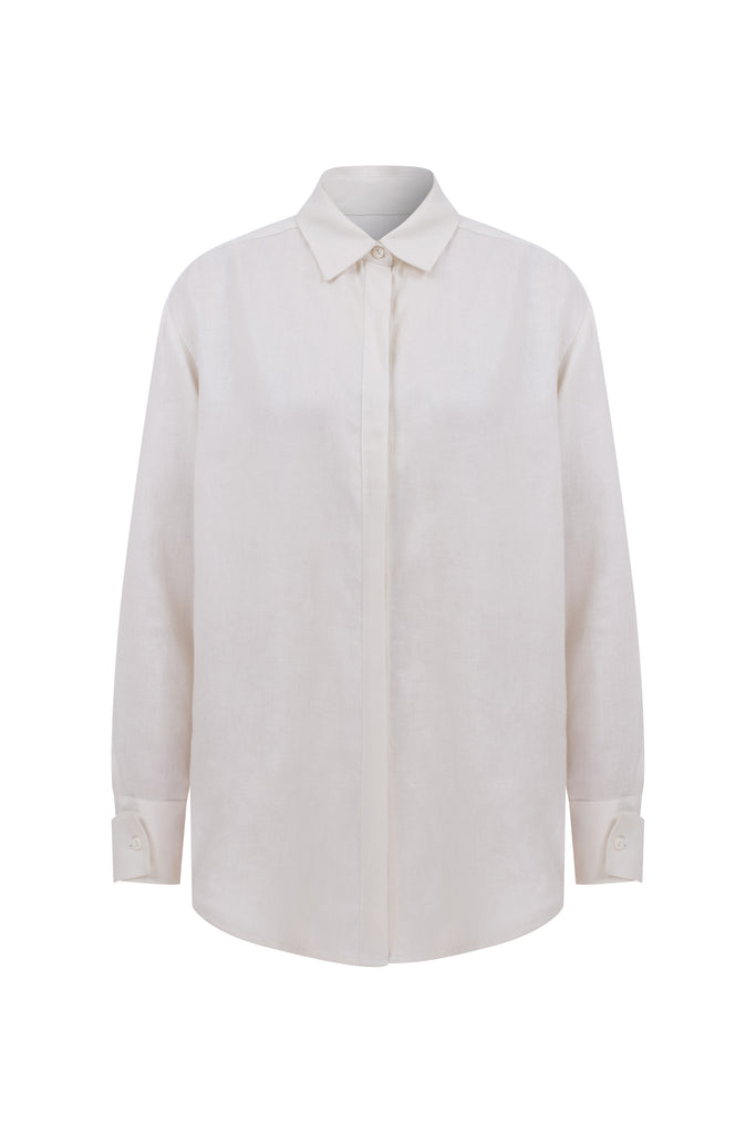 Nazlı Ceren's 'Ravenna' Shirt is crafted from breathable linen in a crisp white hue, making it the perfect choice for summer. This chic shirt features a relaxed fit and elegant detailing, ensuring comfort without sacrificing style. Pair it effortlessly with the Mui Linen Trousers for a polished, summer-ready ensemble.