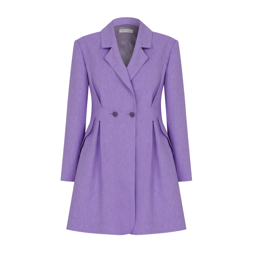 Valerie Shoulder-Padded Blazer Dress in Mauve Mist