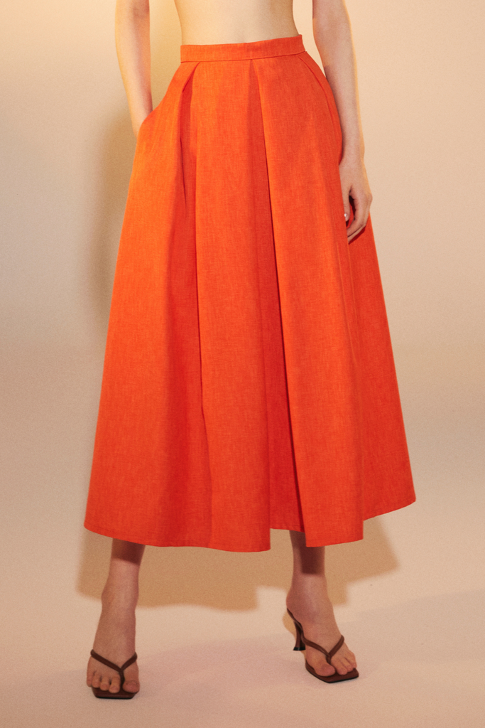 June Midi Skirt in Spicy Orange