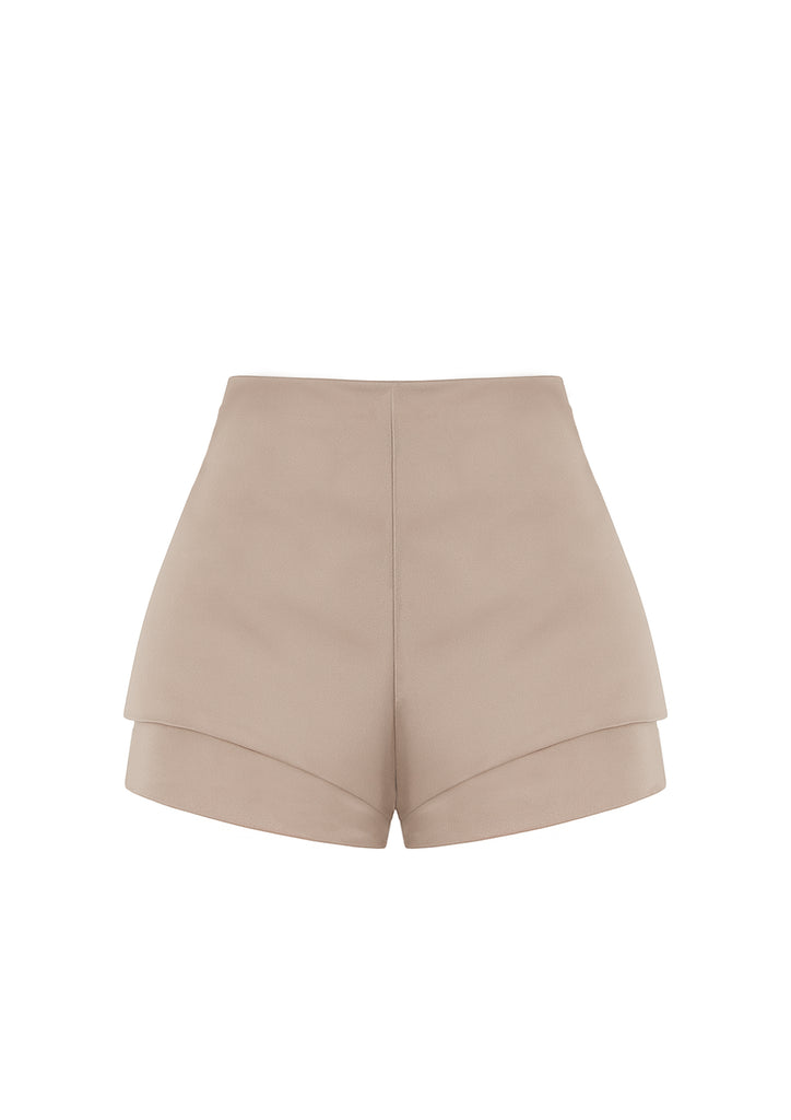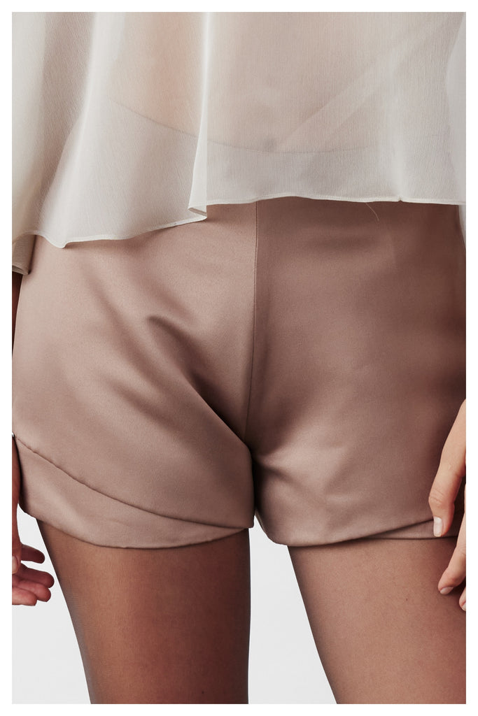 The Maude Mini Satin Shorts are crafted from matte satin fabric with a mid-rise fit. Featuring a double-layered design, they offer a modern yet refined look.