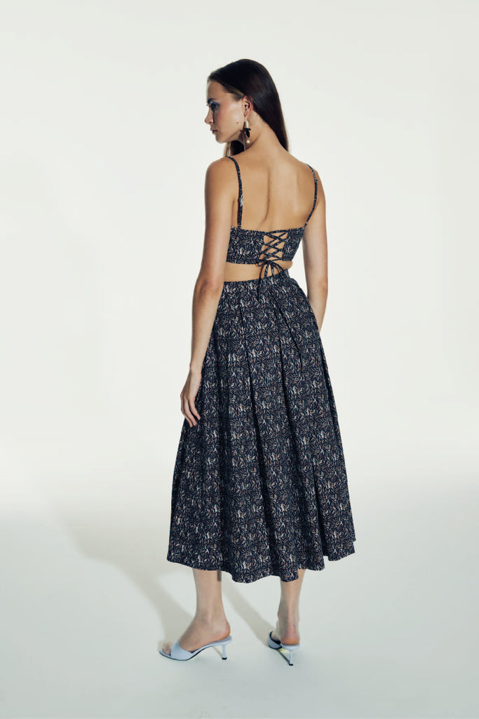 This June Printed Cotton Midi Skirt in Brown is perfect for a night out. Featuring a stylish midi skirt and 100% cotton fabric, this skirt is comfortable with a chic look. The brown fabric is printed with a subtle floral pattern to give you a unique and beautiful look.