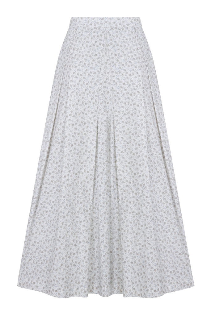June Printed Cotton Midi Skirt in Cannoli Cream