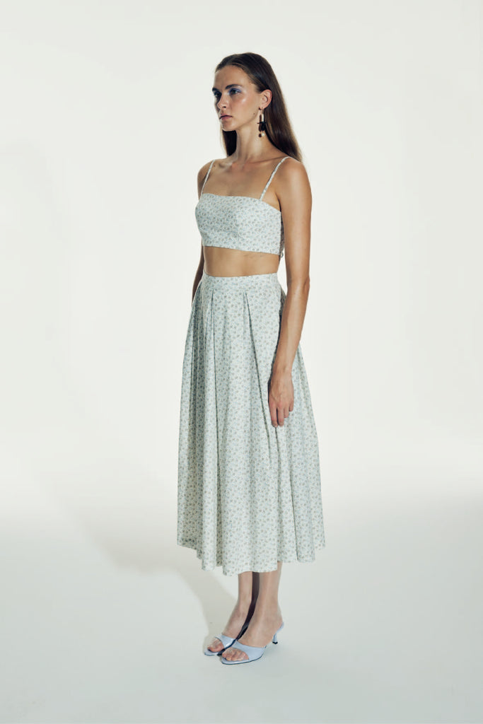 There's a lovely sense of color and movement that flows throughout Nazlı Ceren's Spring '24 Collection. This 'June' midi skirt is softly pleated for an elegant drape. It crafted from lightweight cotton fabric.