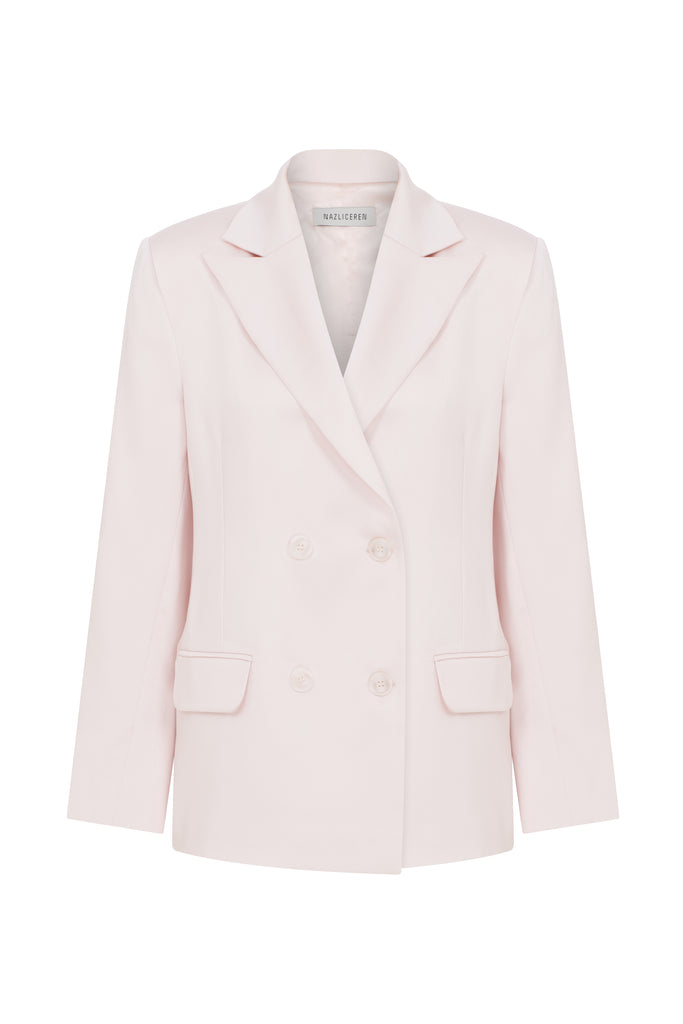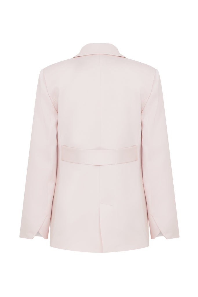 The Elodie Blazer in cloud pink is crafted from soft matte satin and lined with silky satin, offering a luxurious feel. Its bold appearance and structured design make a powerful statement, perfect for any occasion. Pair it with the Marde A-Line Mini Skirt in cloud pink for a chic, coordinated ensemble that exudes elegance and confidence.