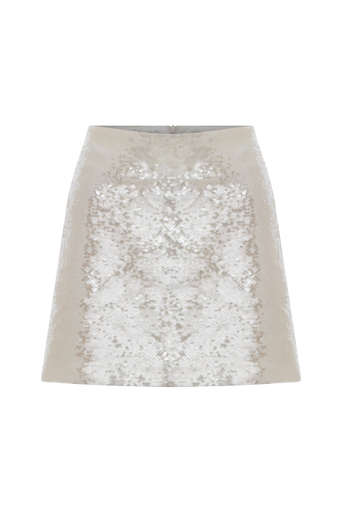 Marde A-Line Sequin Mini Skirt in Cloud Cream