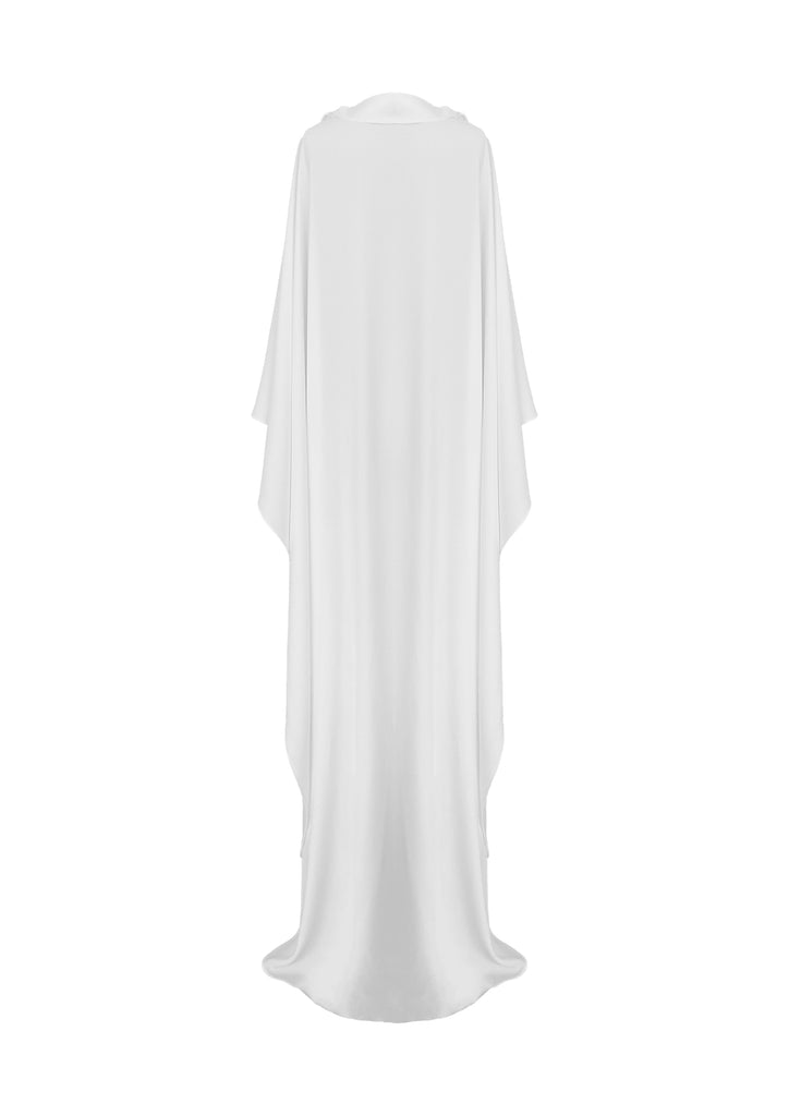 The Caro Crepe Cape is crafted from crepe fabric and features a halter-tie design. With its longer back, it creates a sophisticated silhouette. Styled in the collection with the Tina Trousers.