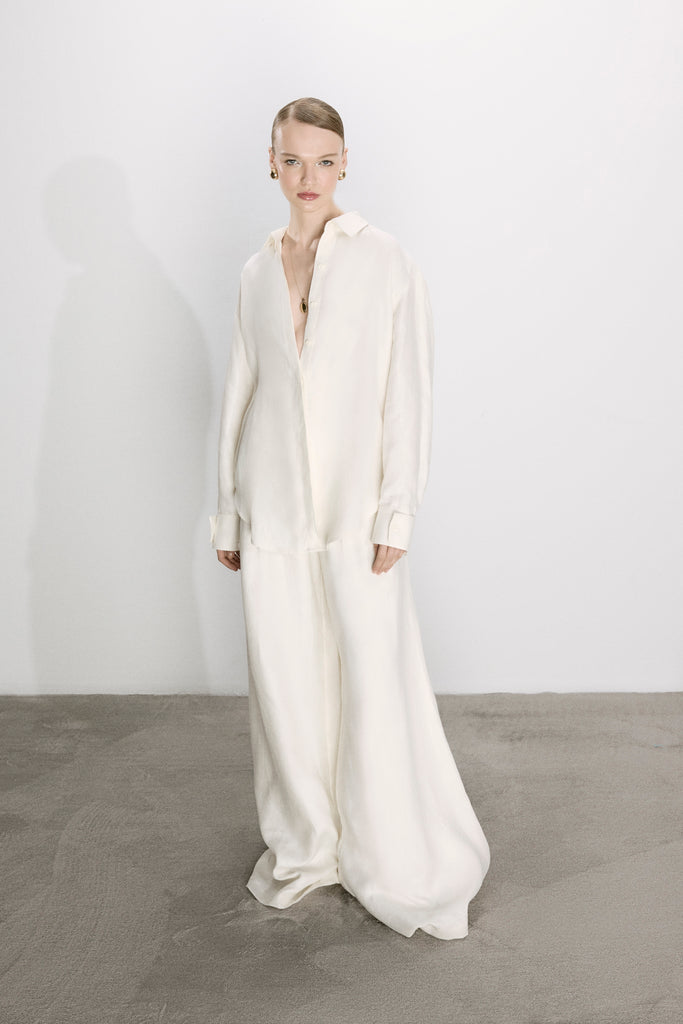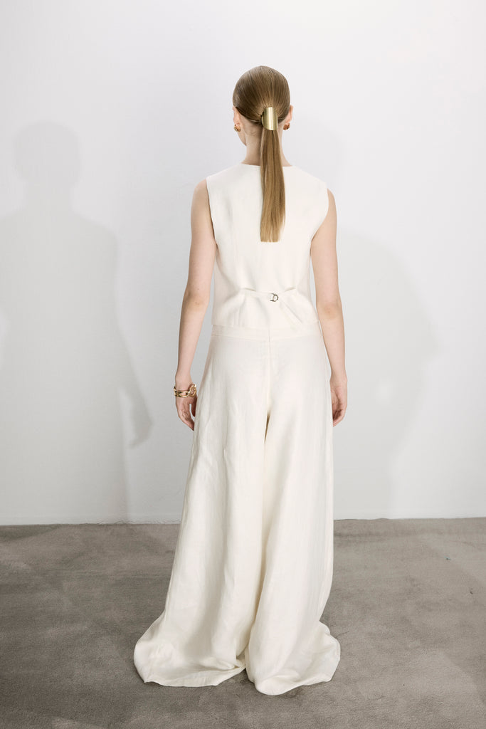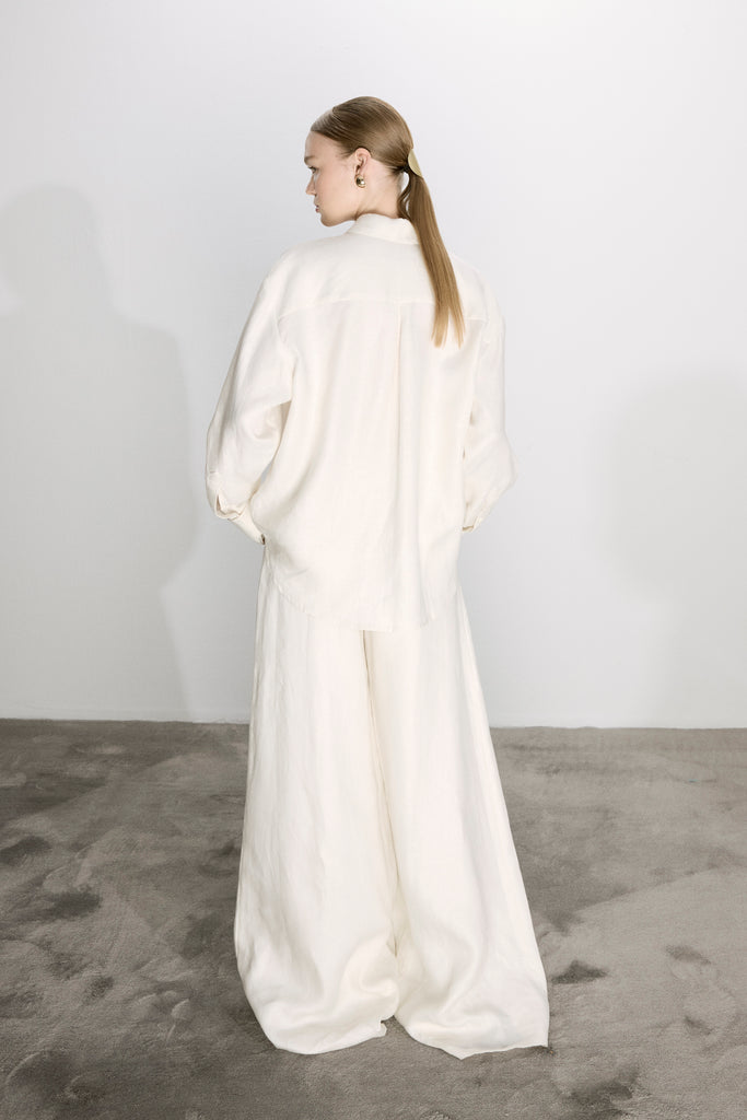 Tailored to an exaggerated wide-leg frame, Nazlı Ceren's Mui trousers are generously cut from linen fabric with a touch of softness, balanced with a mid-rise waist.