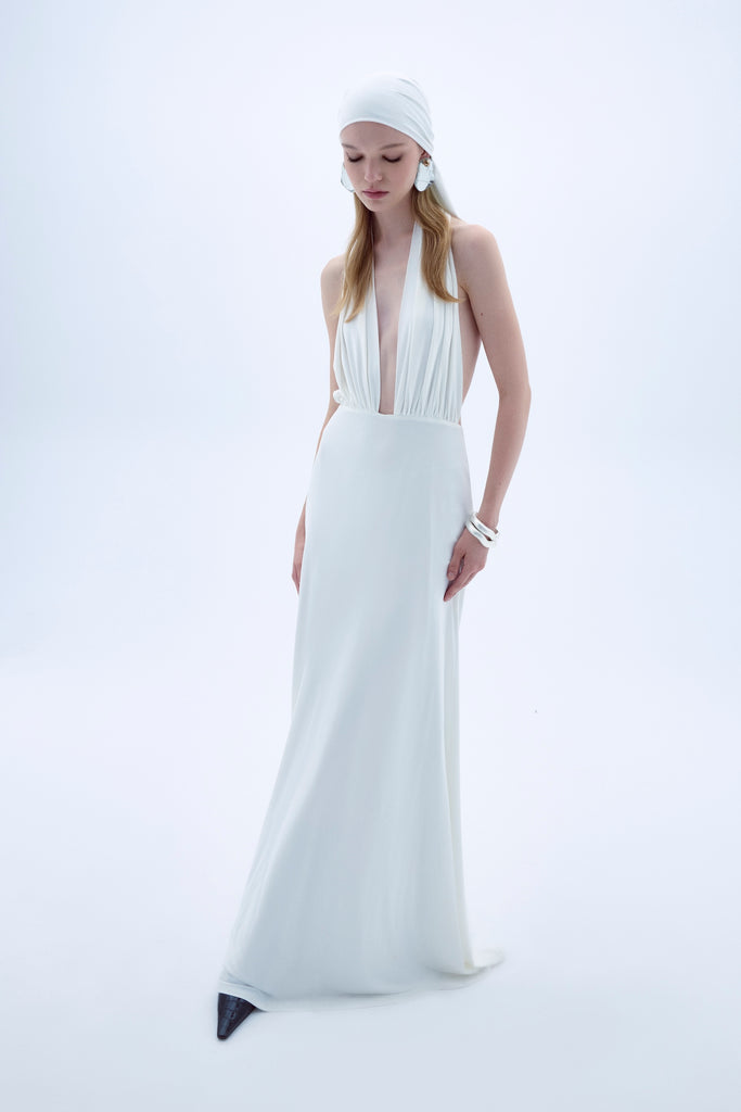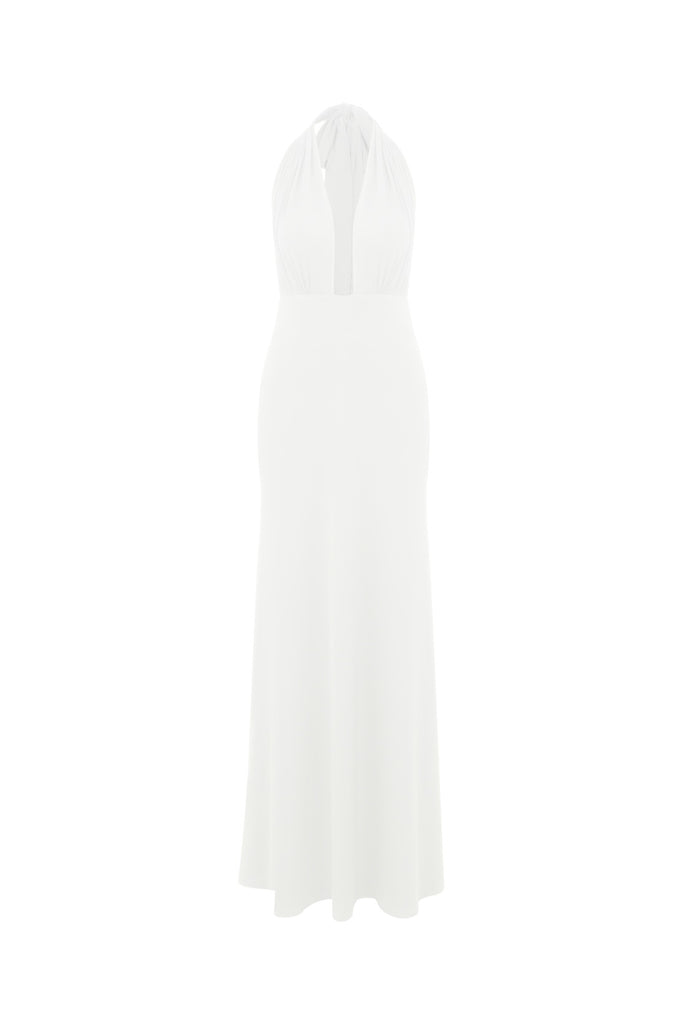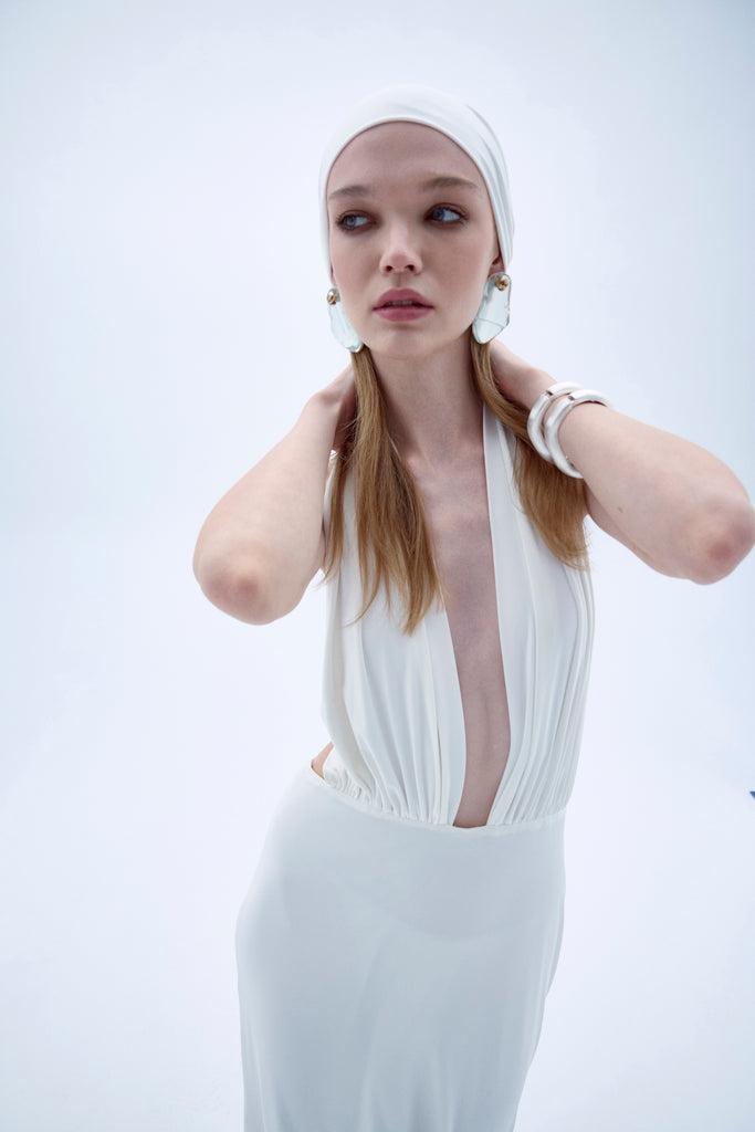The Ines Dress is crafted from lightweight jersey and elegantly draped with subtle ruching to enhance your natural curves. Featuring a striking plunging V-neckline, this dress is available in both timeless white for a classic, refined look, and bold red for those who want to make a daring statement. Whether you're after sophisticated or vibrant, the Ines Dress is designed to turn heads.