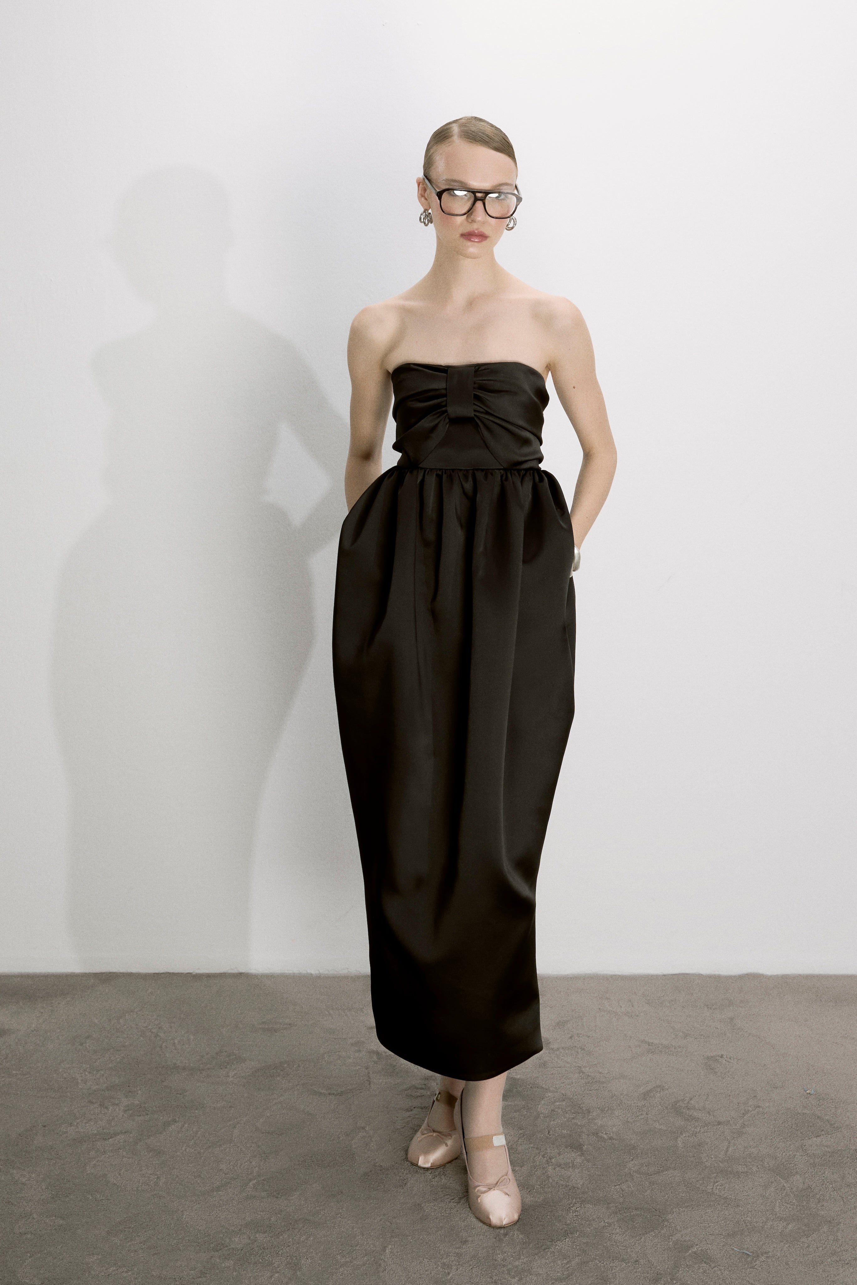 Nazlı Ceren's Jeanne Dress in elegant black is crafted from voluminous viscose, featuring a fitted bodice that transitions into a stunning puff-ball silhouette. With a flattering ball effect from the waist to the hips, the dress narrows gracefully towards the hem. Complete with convenient side pockets, this striking piece combines sophistication and practicality, making it perfect for any special occasion.