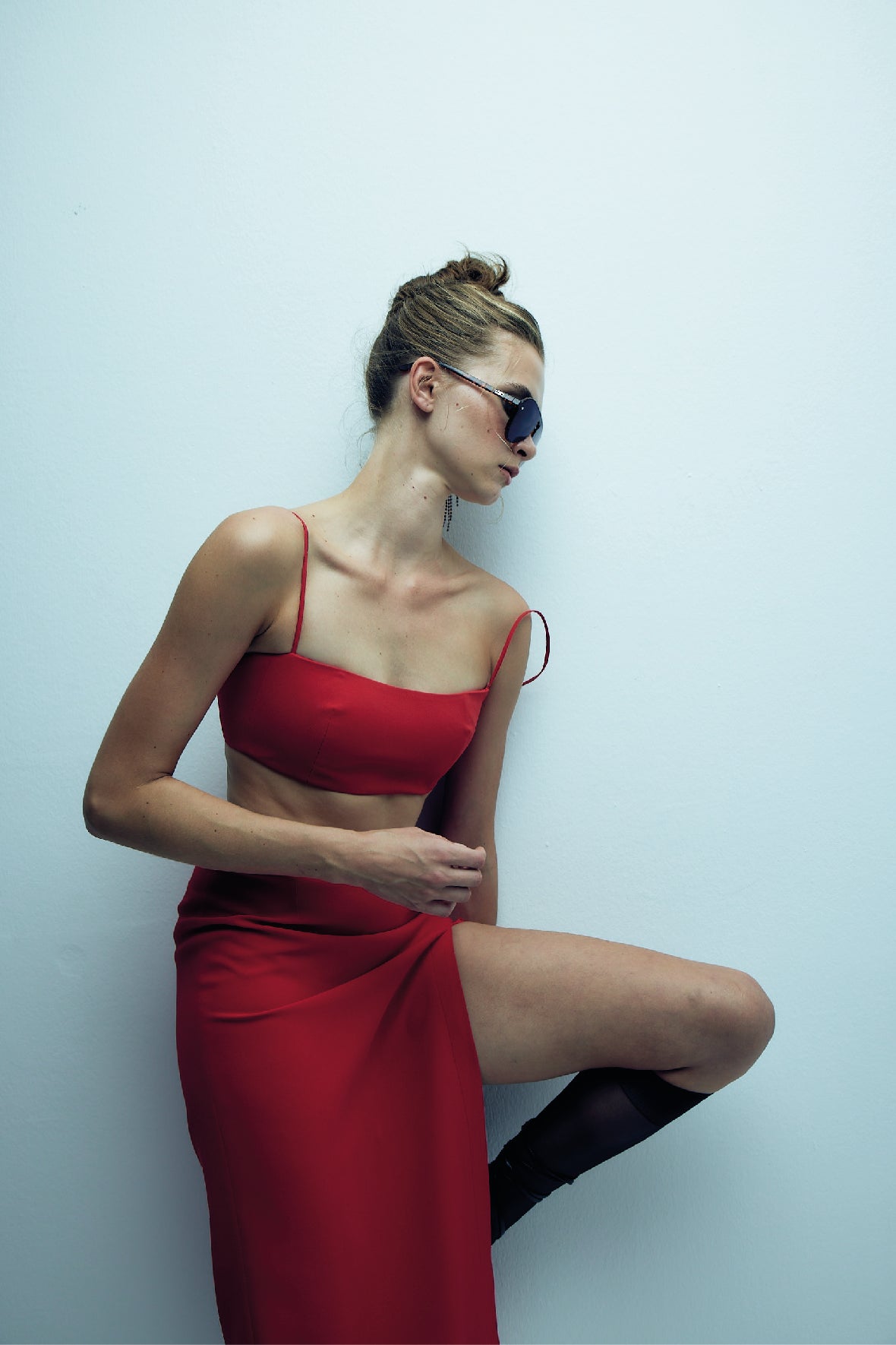 The Lalia Top features elegant straps and is designed to pair perfectly with the Lea Skirt in Red. This chic top combines simplicity with sophistication, making it an ideal choice for a polished ensemble. Effortlessly stylish, the Lalia Top is perfect for any occasion where you want to make a statement.