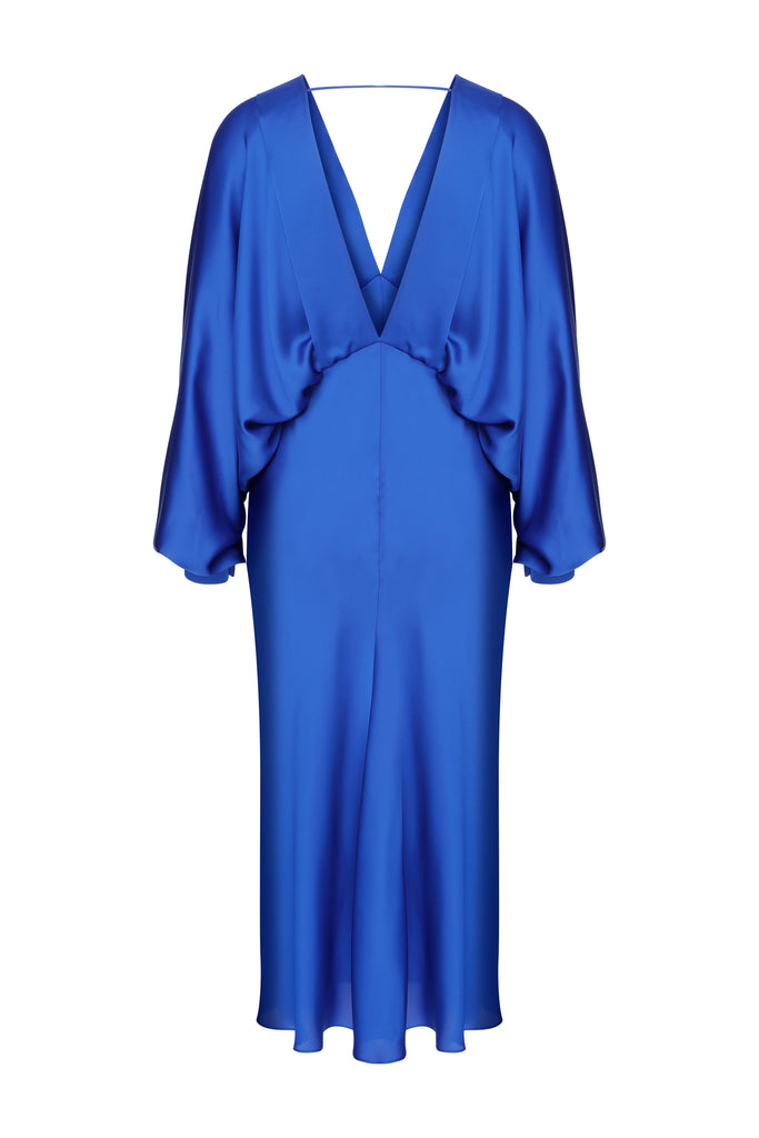 Mila Satin Dress is an elegant wedding-day or special event option, it's crafted from soft satin with a deep V-neck and V shape back and falls to a loose skirt.