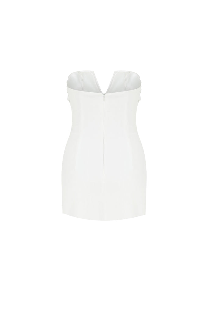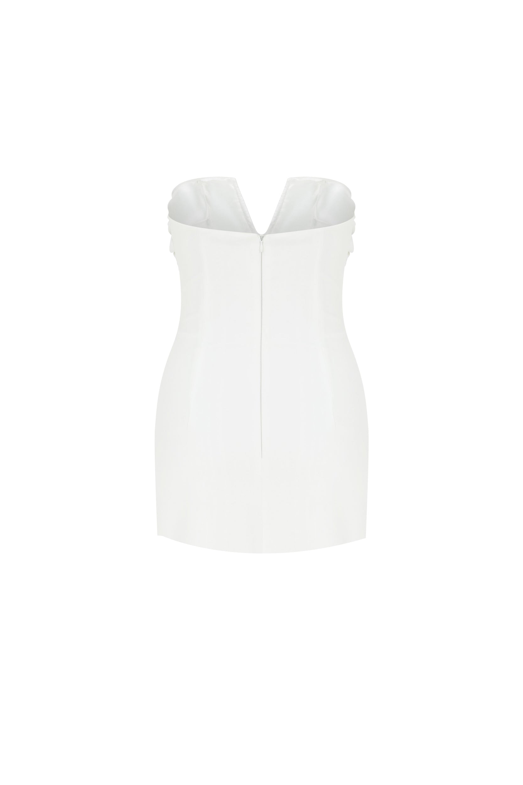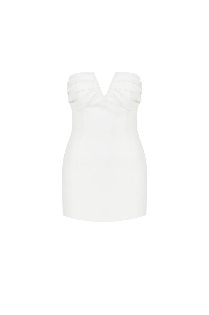 This Miora Strapless Mini Dress is a timeless classic, crafted from luxurious satin for a beautiful silhouette. The creamy vanilla hue is perfect for any special occasion, making you stand out from the rest.