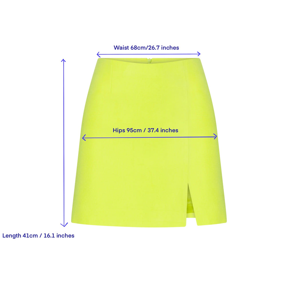Vance lime skirt is cut to sit on the hips, defined by strong tailoring. It is crafted from natural Tencel fabric felt to an A-line silhouette, slit detail, and lined in soft satin.